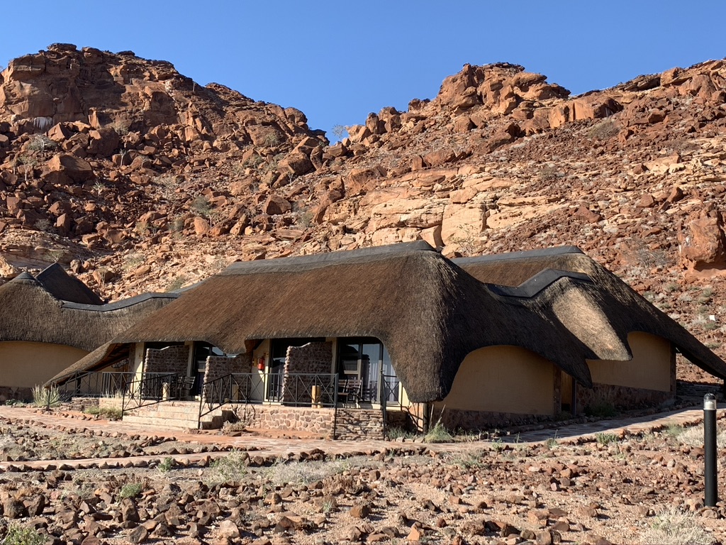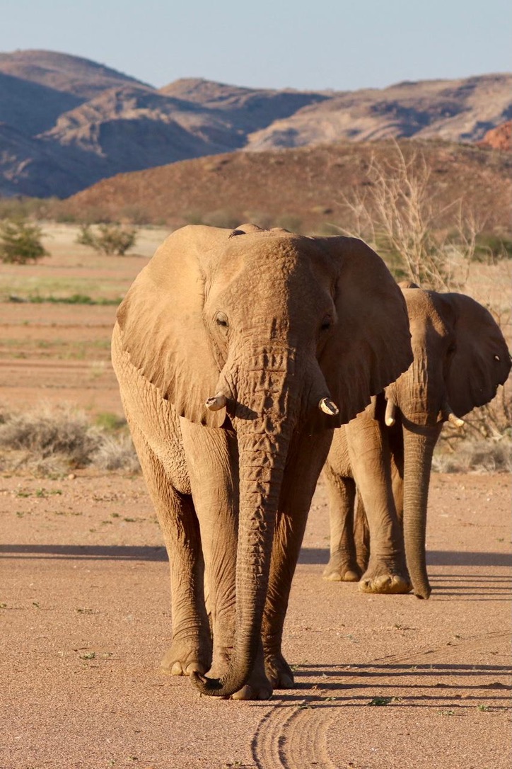 Die Weiterreise nach Damaraland konnte ich entsprechend kaum abwarten. Unsere Reise führte mit einem Abstecher zur Hotelbesichtigung und Mittagessen weiter in Richtung Damaraland, rund 350km. Wir kamen etwas erledigt am Ziel an, dennoch konnte sich ein Grossteil der Gruppe dazu aufraffen 15 Minuten später auf eine Pirschfahrt zu gehen. Der Pool rief zwar äusserst verlockend, aber das tat er auch noch nachdem wir die Wüstenelefanten gesehen haben. Weitere Informationen zu Namibia Reise