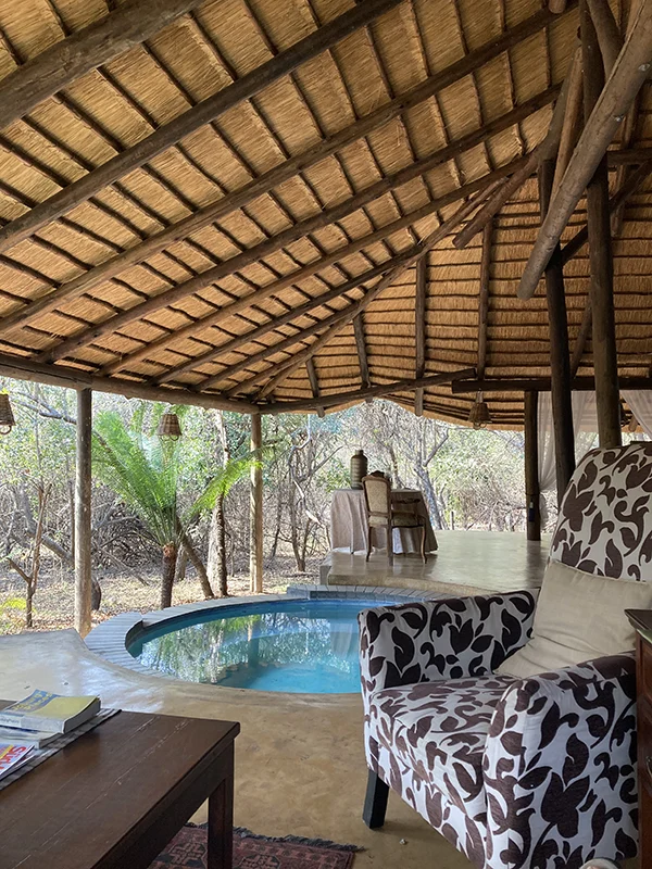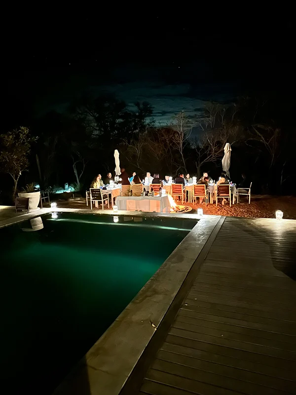 Unsere erste Lodge war ein Traum! Da wir so viele waren, konnten wir gleich eine gesamte Villa für uns beanspruchen plus 2 Bungalows, die dazu gehören. Die Villa Mbali hat eigenes Personal, das von morgens um 7 bis abends um 22.00 für einen da ist. So auch für den ersten Gin Tonic am Pool der Villa, ein gelungenes «Welcome to Africa» für unsere Freunde, die zum grossen Teil noch nie in Südafrika gewesen sind.