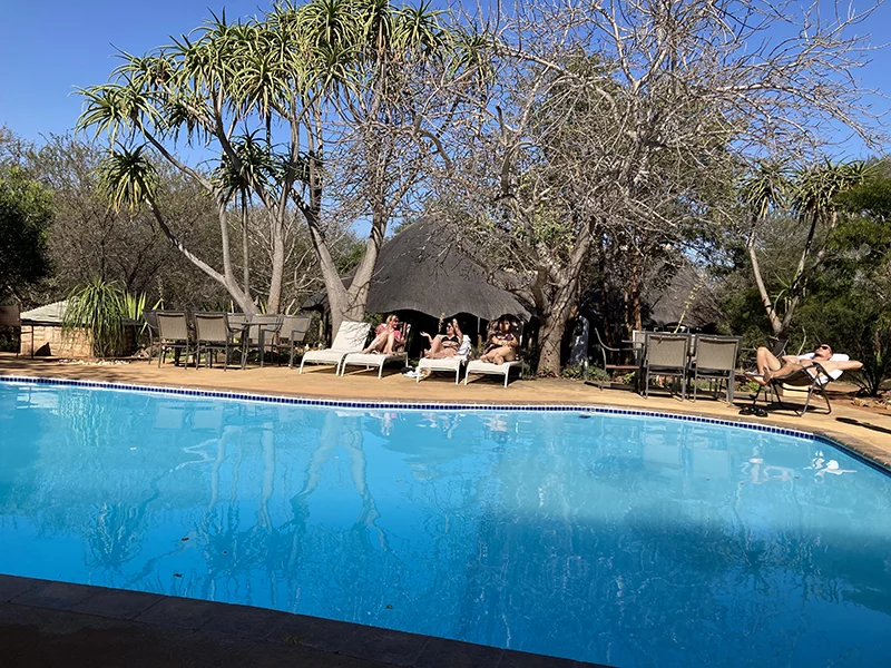 Die Lodge liegt in einem Residential Park, in dem man tagsüber spazieren und Tieren begegnen kann. Eine halbe Stunde vom Krüger Nationalpark entfernt, bieten sie Ganztages-Safaris im Krüger an, aber auch Sunset Drives, Bush Dinners und -Walks oder Ausflüge zu den Canyons. Unsere Gruppe hat alles ausprobiert und unglaublich viele Tiere gesehen, die Big Five waren jetzt mehrmals abgedeckt! Die Ranger sind absolute Profis und gehen auf die Wünsche der Gäste ein.