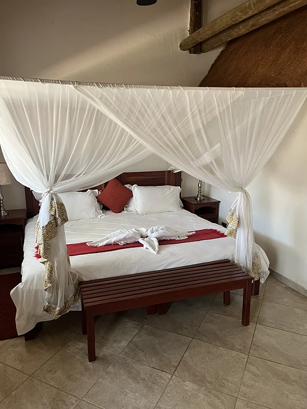 Auch hier wurden wir vom Personal freundlich empfangen und umsorgt. Die Lodge selber hat einen traditionellen Teil im Kolonialstil und ein neues Gebäude mit moderneren Zimmern. Alles ist wunderschön gepflegt, gemütlich und die zwei Minipools sorgen an heissen Tagen für Erfrischung.