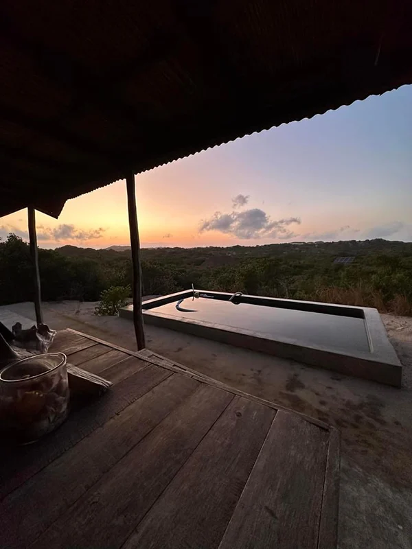 Die Lodge ist brandneu und für Liebhaber von Ruhe und Natur perfekt! Die Bungalows liegen allesamt so, dass niemand einen Einblick hat. Sie sind einfach eingerichtet, bieten aber allen Comfort, der benötigt wird. Strom gibt es in den Bungalows keinen, nur Batteriebetriebene Lampen, die abends aber auch vollkommen reichen. Handys können im Haupthaus geladen werden, wir hatten alle solarbetriebene Powerbanks dabei. Da es in dieser Lodge auch kein Wifi gibt, brauchten wir die Handys ausschliesslich, um die einmalige Landschaft zu fotografieren.