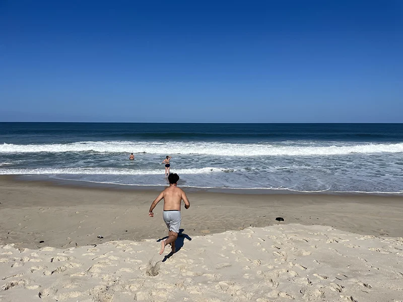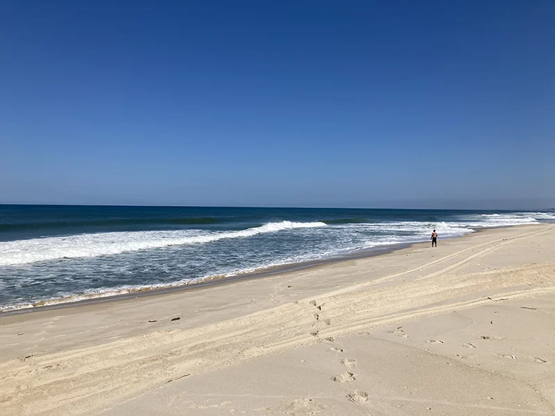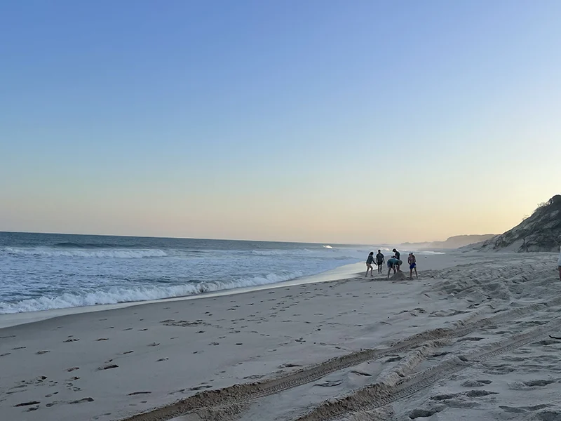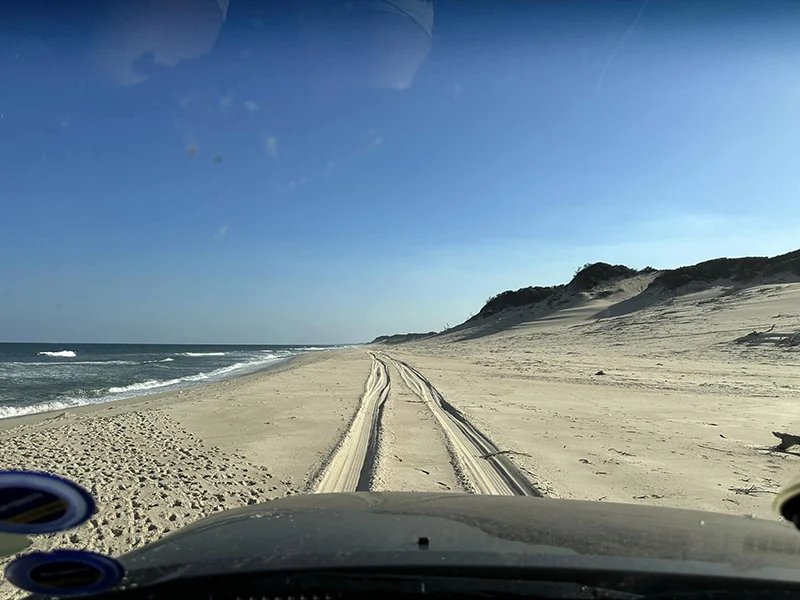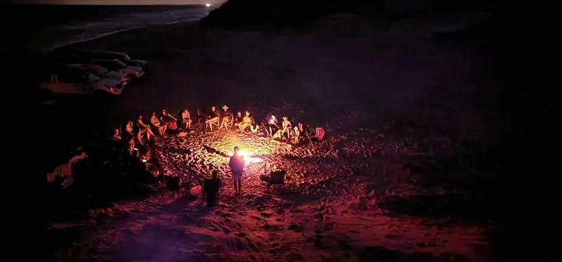 Nach einer kalten ersten Nacht, freuten wir uns auf den Strand-Tag. Die Landrovers, die uns schon hierher gebracht hatten, wurden mit Campingstühlen, Pavillons, Getränken und uns vollgeladen und die fünf Minuten zum Strand gefahren. Auch hier war der Service fürstlich: Die Stühle, Tische und Pavillons wurden aufgestellt, der Strandtag im Schatten konnte beginnen. Boogie Boards und Surfbretter standen uns zur Verfügung, aber die meisten genossen einfach einen Tag Nichtstun. Die Lodge bietet auch Aktivitäten an den umliegenden Seen an, wie Kayak. Mittags wurden wir direkt am Strand verpflegt. Nach dem Feuer am Strand mit Musik und Apéro erwartete und ein einmaliges Dinner: Meeresfrüchte und Fisch auf dem Braai, was für ein Genuss!
