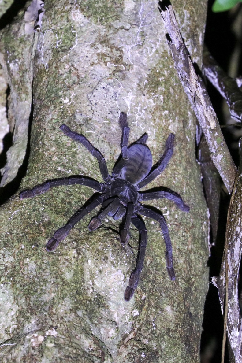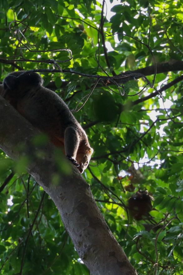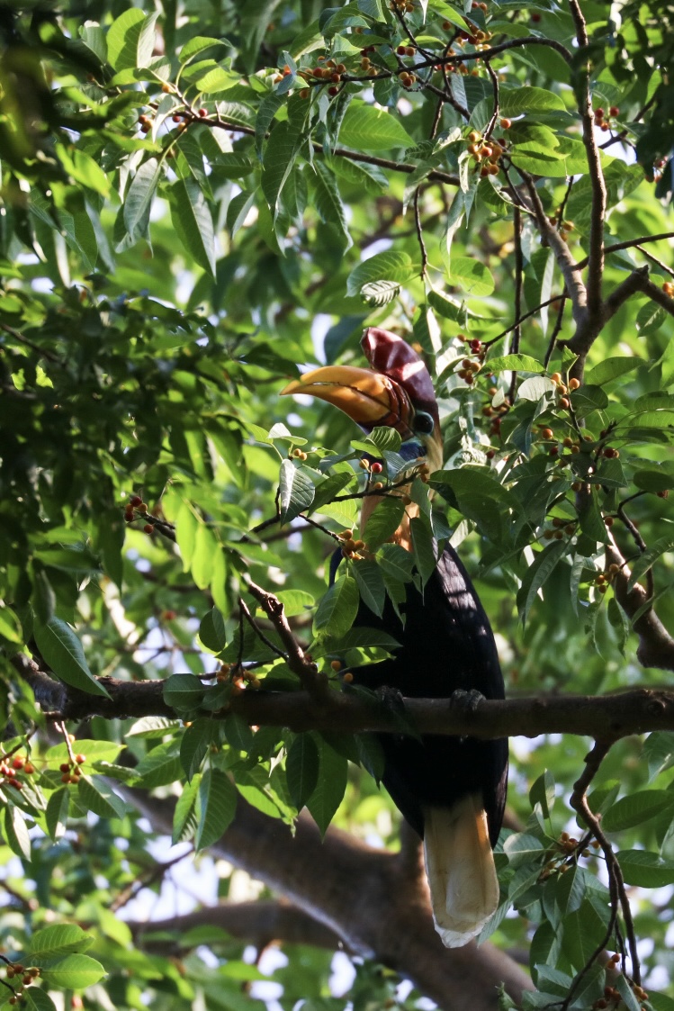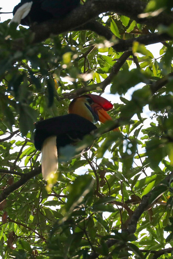 Nach 4 kurzen Nächten fahren wir mit dem Fischerboot nach Tiwoho, wo uns ein Fahrer der Tangkoko Sanctuary Villa erwartet und uns nach einem Abstecher auf das Immigrationsbüro in Manado für die Visaverlängerung eben dahin bringt. Die nächsten Tage verbringen wir nämlich im Dschungel auf der Suche nach Nashornvögeln und Tarsieren. Während wir auf Siladen ein Bungalow mit 3 Betten teilten und der Platz im Zimmer eher beschränkt war, haben wir hier zwei riesige Zimmer mit Balkon und grossem Bad. Nach einem späten Mittagessen spazieren wir 20 Minuten ins Dorf und verbringen da etwas Zeit. Nach einem leckeren Abendessen gehts bald ins Bett, denn der nächste Tag startet früh morgens. Die beiden Touren durch den Dschungel haben wir bereits vorab gebucht und konnten uns so den besten Guide sichern. Mansor empfängt uns um 6.00 Uhr am Eingang des Nationalparks. Schon nach wenigen Schritten sehen wir bunte Spechte und einen sehr scheuen Vogel. Mansor, ein Vogelliebhaber durch und durch, freut sich wie ein kleines Kind. Die Lichtverhältnisse und die gute Tarnung des Vogels lassen aber kein Foto zu. Etwas tiefer im Dschungel finden wir einen grossen Kingfisher, schwarze Makaken und einen Cus-Cus-Bären sowie bald darauf auch die grossen Helmhornvögel. Die Vormittagstour ist ein voller Erfolg und wir kehren mit vielen tollen Eindrücken zurück in die Unterkunft für ein wohl verdientes Frühstück. Die Dschungeltour geht am Nachmittag weiter um die dämmerungsaktiven Tiere zu erleben. So stehen wir um 16.30 Uhr wieder mit Mansor am Eingang des Parks. Zielstrebig führt er uns zu einem grossen Baum, von dem er weiss, dass die kleinen Tarsier darin leben. Wir beobachten die kleinen Tiere mit ihren grossen Augen eine Weile und machen viele Fotos. Auf dem Rückweg sehen wir noch eine grosse violette Tarantel. Nach dem Abendessen geht’s für mich wiederum bald ins Bett, denn meine Vogel-Fototour startet sogar noch früher. Um 5.30 Uhr fahren wir zu dritt los auf der Suche nach verschiedenen Vögeln, deren Namen ich mir beim besten Willen nicht merken kann. Der Sulawesizwergfischer ist zweifellos mein lieblings Fotosujet an diesem Tag.