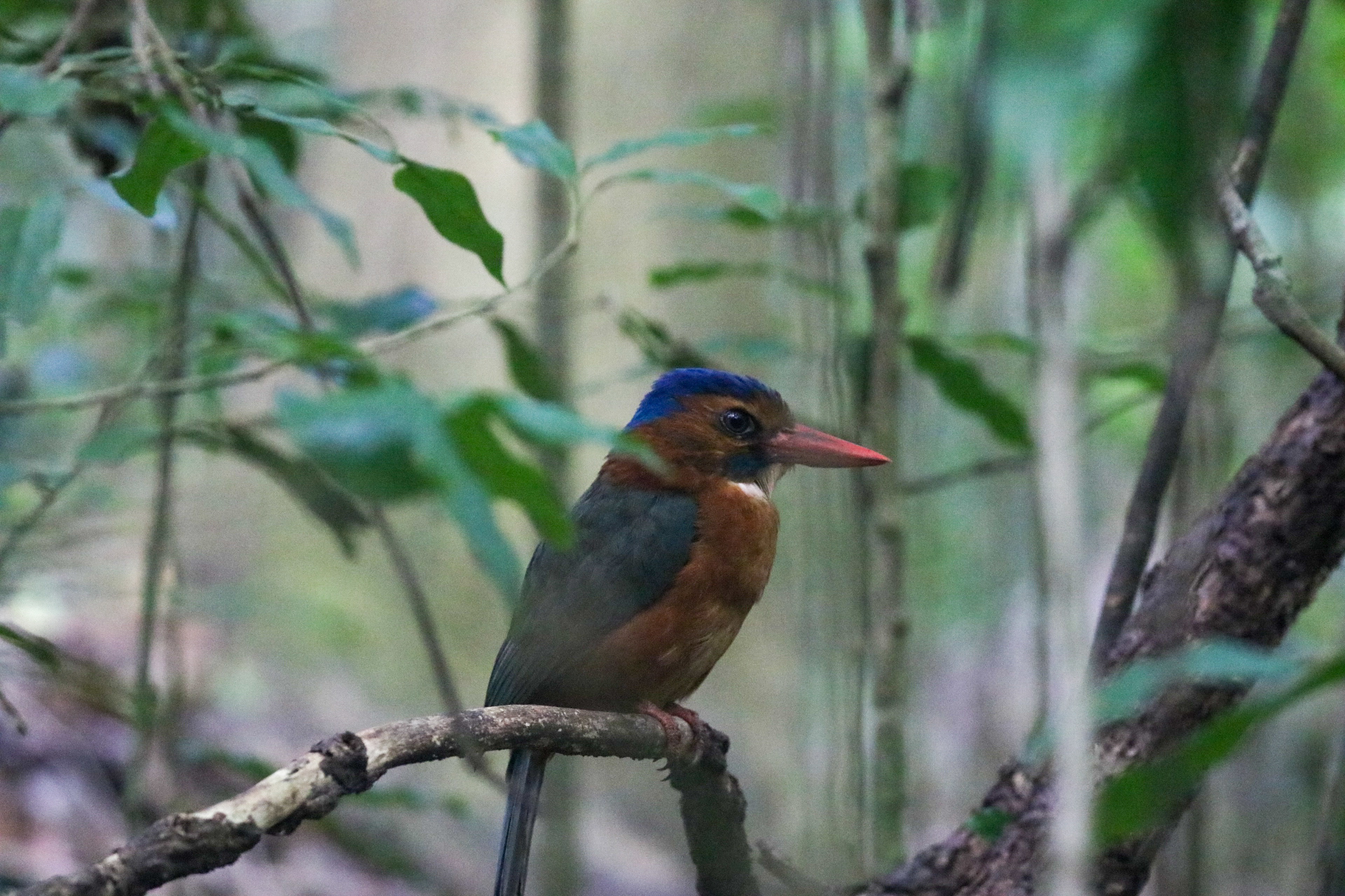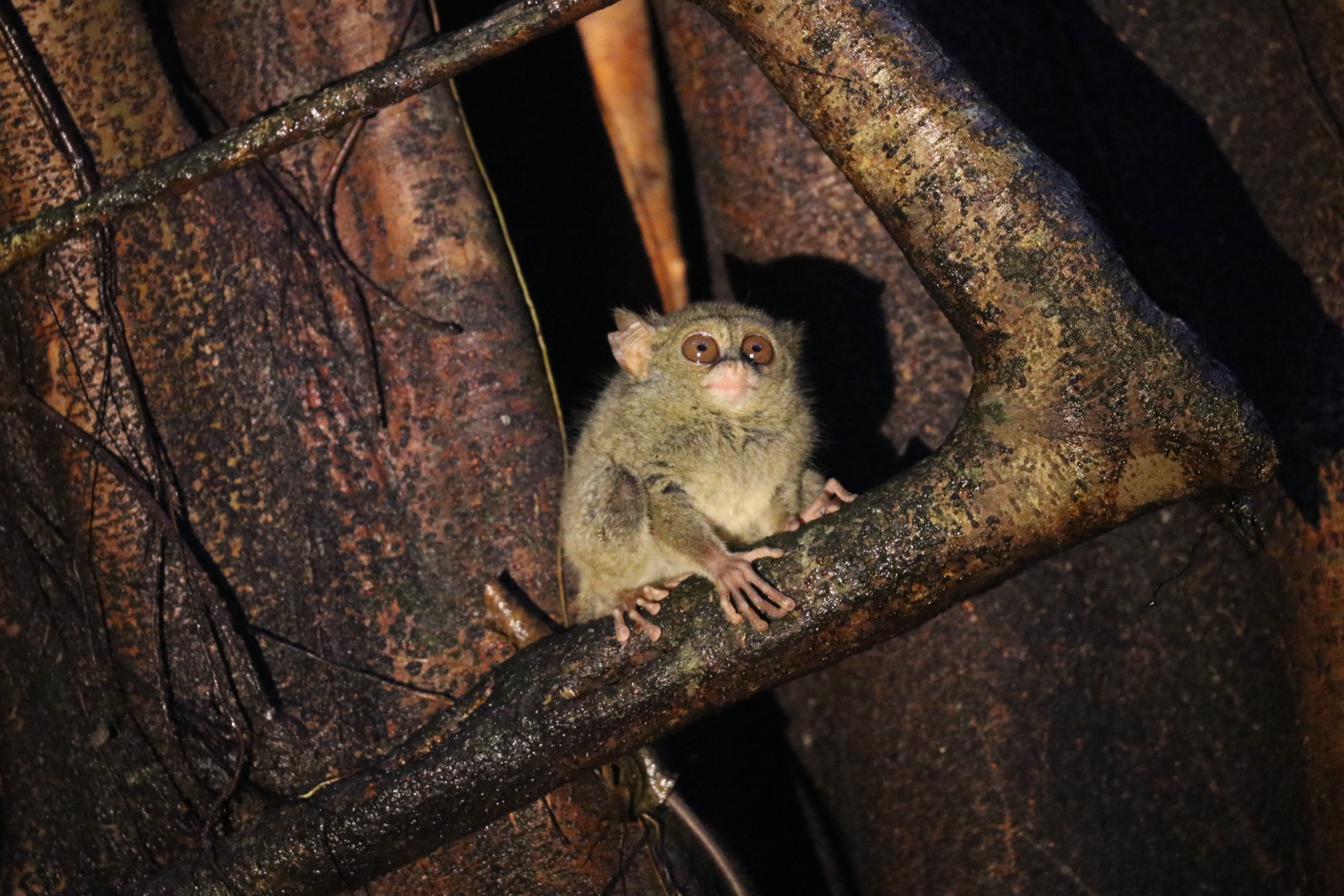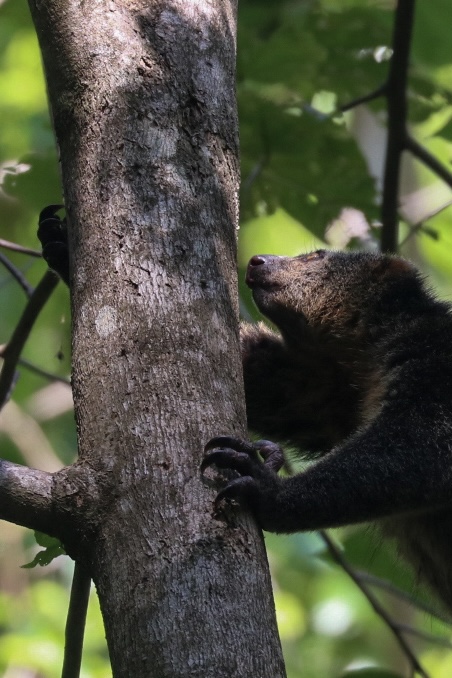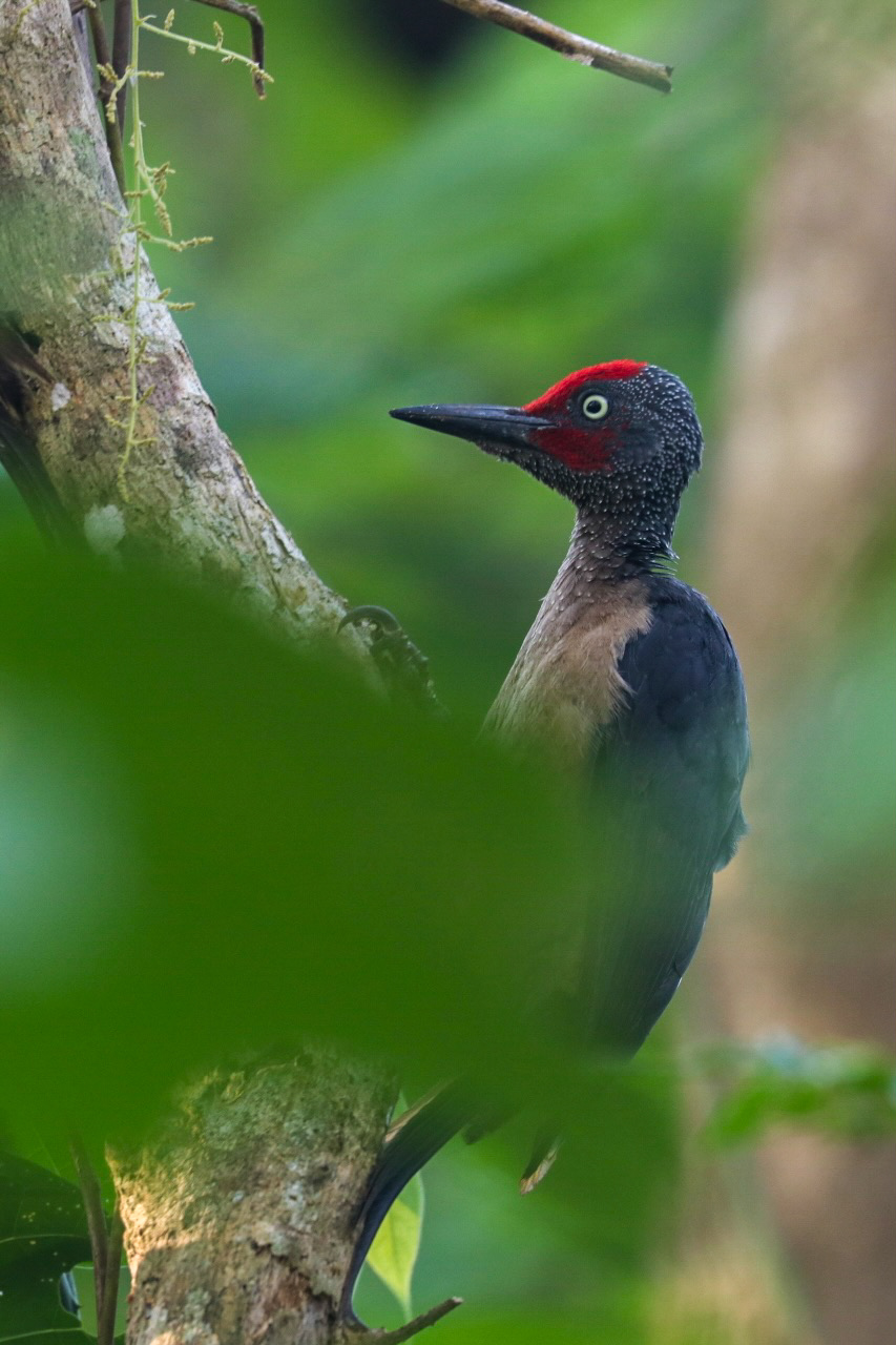 Nach 4 kurzen Nächten fahren wir mit dem Fischerboot nach Tiwoho, wo uns ein Fahrer der Tangkoko Sanctuary Villa erwartet und uns nach einem Abstecher auf das Immigrationsbüro in Manado für die Visaverlängerung eben dahin bringt. Die nächsten Tage verbringen wir nämlich im Dschungel auf der Suche nach Nashornvögeln und Tarsieren. Während wir auf Siladen ein Bungalow mit 3 Betten teilten und der Platz im Zimmer eher beschränkt war, haben wir hier zwei riesige Zimmer mit Balkon und grossem Bad. Nach einem späten Mittagessen spazieren wir 20 Minuten ins Dorf und verbringen da etwas Zeit. Nach einem leckeren Abendessen gehts bald ins Bett, denn der nächste Tag startet früh morgens. Die beiden Touren durch den Dschungel haben wir bereits vorab gebucht und konnten uns so den besten Guide sichern. Mansor empfängt uns um 6.00 Uhr am Eingang des Nationalparks. Schon nach wenigen Schritten sehen wir bunte Spechte und einen sehr scheuen Vogel. Mansor, ein Vogelliebhaber durch und durch, freut sich wie ein kleines Kind. Die Lichtverhältnisse und die gute Tarnung des Vogels lassen aber kein Foto zu. Etwas tiefer im Dschungel finden wir einen grossen Kingfisher, schwarze Makaken und einen Cus-Cus-Bären sowie bald darauf auch die grossen Helmhornvögel. Die Vormittagstour ist ein voller Erfolg und wir kehren mit vielen tollen Eindrücken zurück in die Unterkunft für ein wohl verdientes Frühstück. Die Dschungeltour geht am Nachmittag weiter um die dämmerungsaktiven Tiere zu erleben. So stehen wir um 16.30 Uhr wieder mit Mansor am Eingang des Parks. Zielstrebig führt er uns zu einem grossen Baum, von dem er weiss, dass die kleinen Tarsier darin leben. Wir beobachten die kleinen Tiere mit ihren grossen Augen eine Weile und machen viele Fotos. Auf dem Rückweg sehen wir noch eine grosse violette Tarantel. Nach dem Abendessen geht’s für mich wiederum bald ins Bett, denn meine Vogel-Fototour startet sogar noch früher. Um 5.30 Uhr fahren wir zu dritt los auf der Suche nach verschiedenen Vögeln, deren Namen ich mir beim besten Willen nicht merken kann. Der Sulawesizwergfischer ist zweifellos mein lieblings Fotosujet an diesem Tag.
